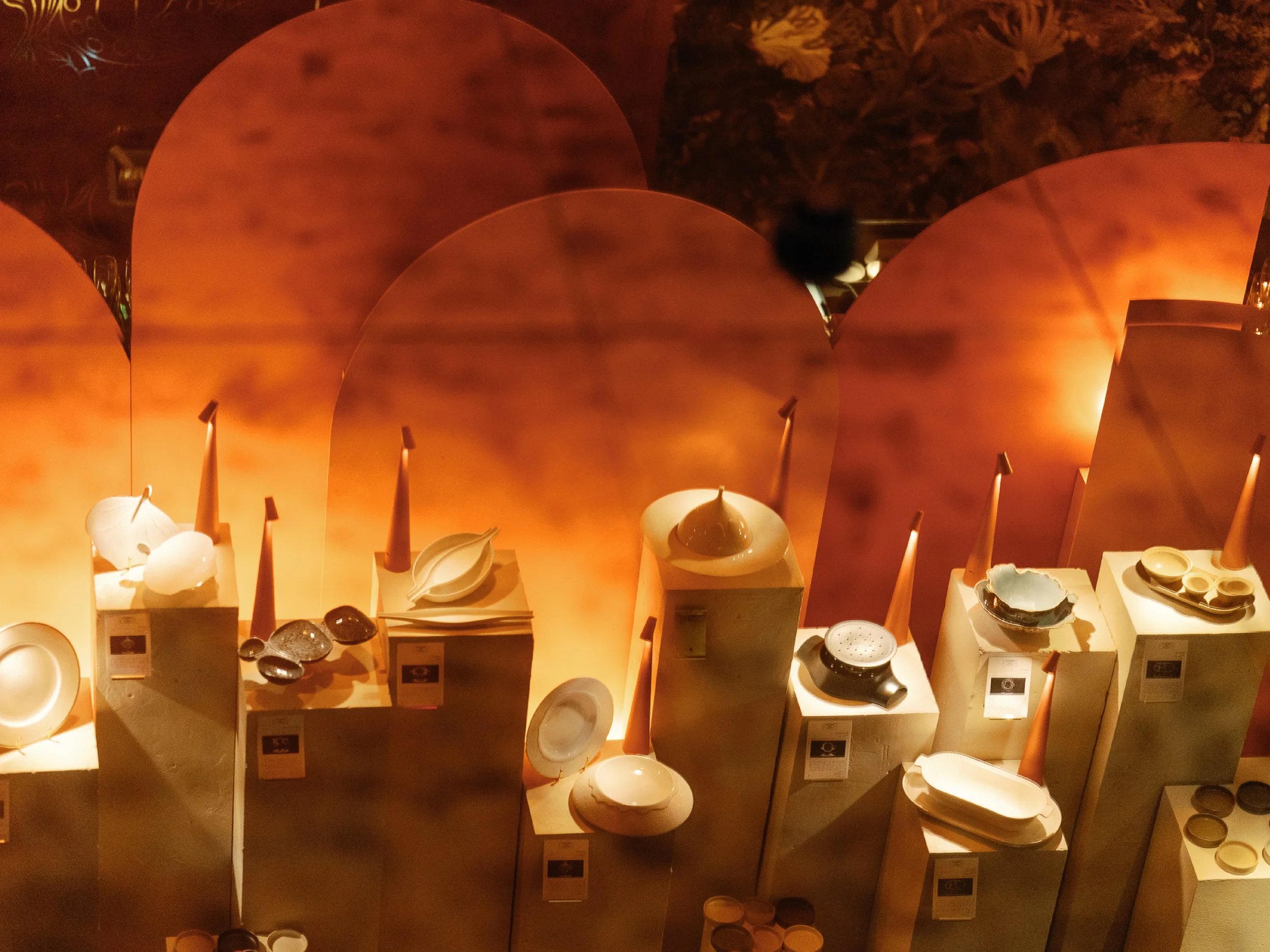 The showcase began with an immersive installation that treated the plate not as a decorative object, but as a technical foundation. Elevated on pedestals and accompanied by design blueprints, the pieces were presented as designed instruments—with weight, depth, heat behavior, and intention—rather than as part of a sculptural composition. This analytical gallery; minimal, disciplined, and precise, invited looking rather than spectacle, and understanding rather than interpretation, portraying Fathy Mahmoud’s work as the silent discipline that dictated the success of a service.